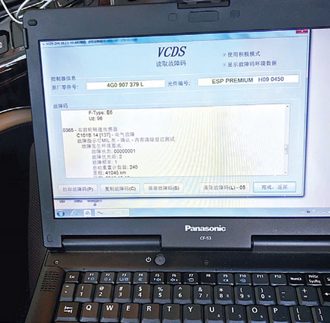 Diagnosis: First, connect to VCDS and enter 03 detection, the fault code is 0365 of the right front wheel speed sensor, the fault code is shown in Figure 1.