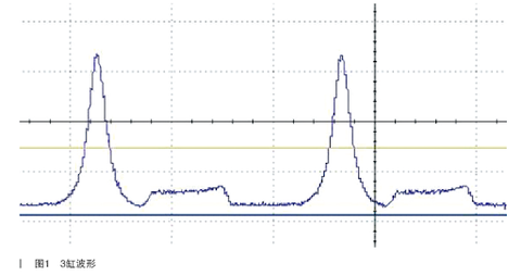 During the repair they found that if one camshaft position sensor was unplugged, and the engine operated normailly. After an invalid replace of the CVVT execution solenoid valve, they came to me for help. Since the cylinder pressure had been tested, I used a self-made cylinder pressure sensor to collect the pressure waveforms of cylinders 1 and 3 at idle speed. Cylinder No.3’s waveform in valve lift control mode is as shown in Figure 1.