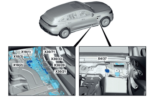 Look up the location of X18 in WIS and find that X18 is divided into three plugs, namely X18 (1), X18 (2) and X18 (3), and they are all located on the right front floor.