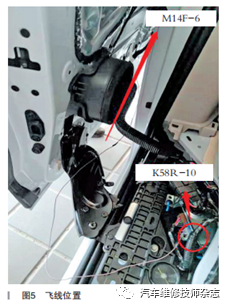 (8) The ignition is OFF, and the end-to-end resistance of the test signal circuit K58R-10 and M14F-6 is OL—abnormal.