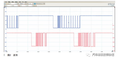 Use an oscilloscope to measure the HVAC comfort CAN signal waveform of the air conditioning control module, and C2H101A-6 and C2H101A-7 measure the abnormal comfort CAN signal waveform, as shown in Figure 4.