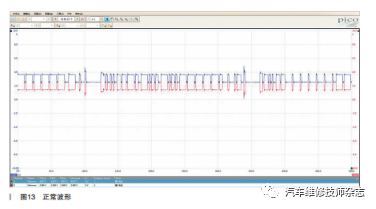 Repair the disconnected wiring harness, use an oscilloscope to measure the HVAC comfort CAN signal waveform of the air conditioning control module, the signals of C2H101A-6 and C2H101A-7 are normal (as shown in Figure 9), and test the vehicle for troubleshooting.
