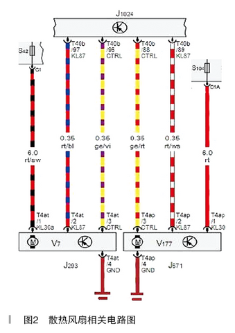 Troubleshooting: The car is a plug-in hybrid vehicle, the temperature of the air conditioner and engine as well as the temperature of the high voltage components and the cooling fan are controlled by the thermal management control unit J1024. Referring to the circuit diagram (as shown in Figure 1), it can be seen that the main and auxiliary fans have 1 main power supply, 1 main ground, 1 KL87 line and 1 signal control line respectively. KL87 is about 9.35V when the ignition switch is turned on. When the output duty cycle of the CTRL control line is 10%, the fan is stopped; when the duty cycle output exceeds 10% and is closer to 100%, the fan speed is higher.