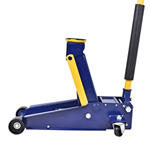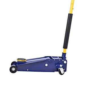 - 2-piece handle: This heavy-duty floor jack is equipped with a long two-piece handle for easy operation and reduces operator fatigue