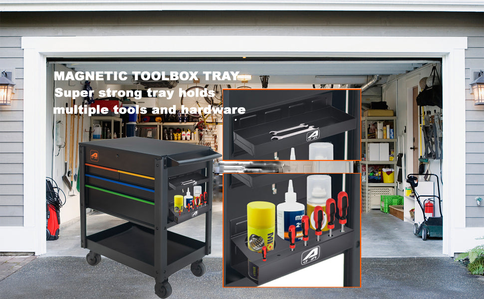 - Securely attach this tray to any ferrous metal surface and easily attaches to walls, tool chests, and cabinets. The organizer tray is ideal for use in garages, workshops, and auto and mechanic shops.