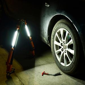The light tubes are detachable and can be used separately as handheld worklights or hands-free using the folding hooks.