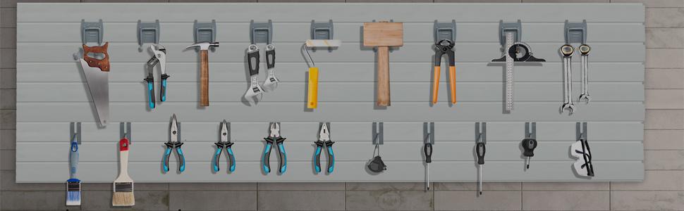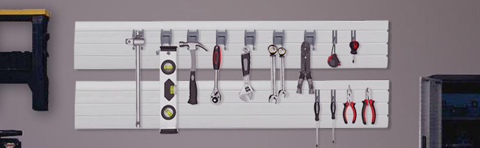 - 【Multi function garage wall storage】 Make the most of your slatwall system, with a wide variety of hooks and baskets to keep all of your garage items organized and within easy reach.